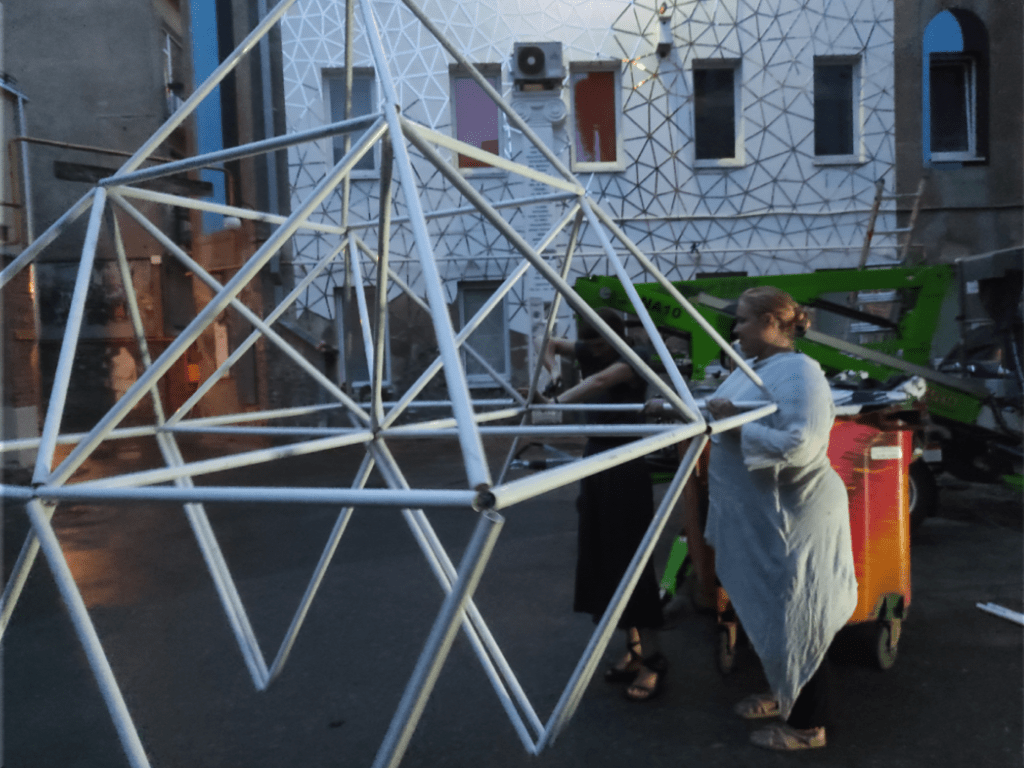 Thus, this year at the Yard Gallery, we plan to create a 4.5-meter-wide garden installation from weather-resistant synthetic materials. This installation will replicate the mirror-like structure of the “White House,” composed of numerous triangles.