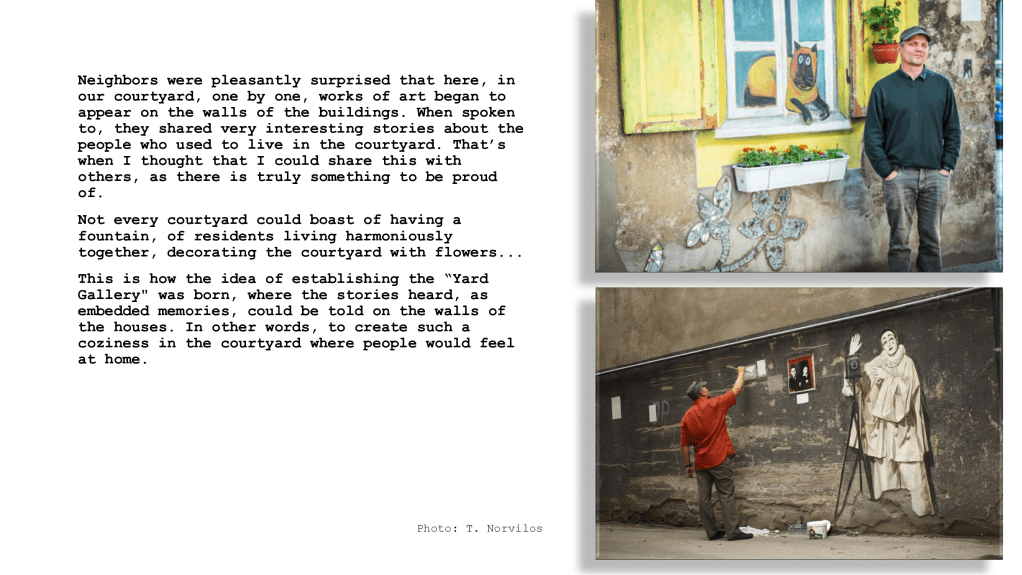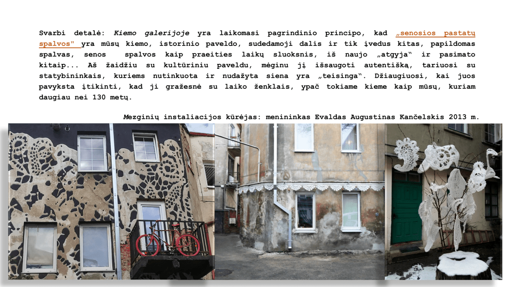 Šiame puslapyje rasite dvi knygas, kurios pasakoja Kiemo galerijos istoriją, įskaitant jos projektus, meno kūrinius ir žmones – kaimynus, kurie padarė šį projektą įmanomu.